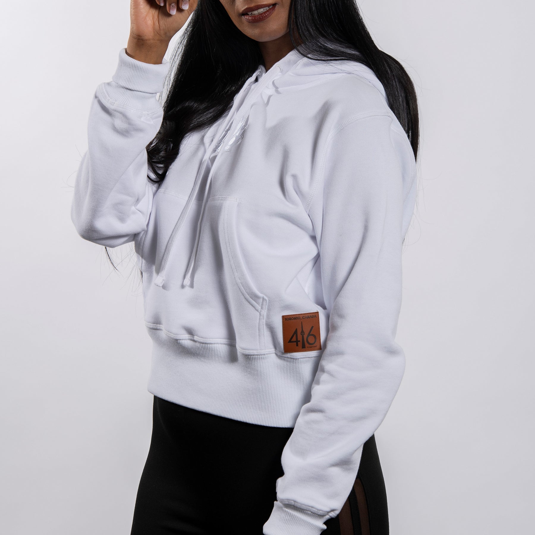 Our 416 Pullover Hoodie is crafted using 100% French Terry cotton.  This premium piece features a 3D embroidered 416 logo, a Canada flag patch on the right sleeve, a top grain leather patch, and a unique word marking on the hood. Whether you’re lounging with loved ones or pushing yourself to the limit, our versatile hoodie is just the thing to keep you comfortable.
