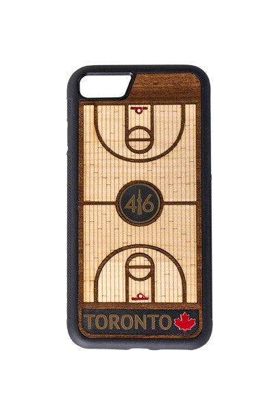 This one of a kind phone case was hand crafted using natural wood. It is an exact replica of a pro style basketball court. The case features a assortment of wood, laser cut inlays, and a flexible rubber shell.