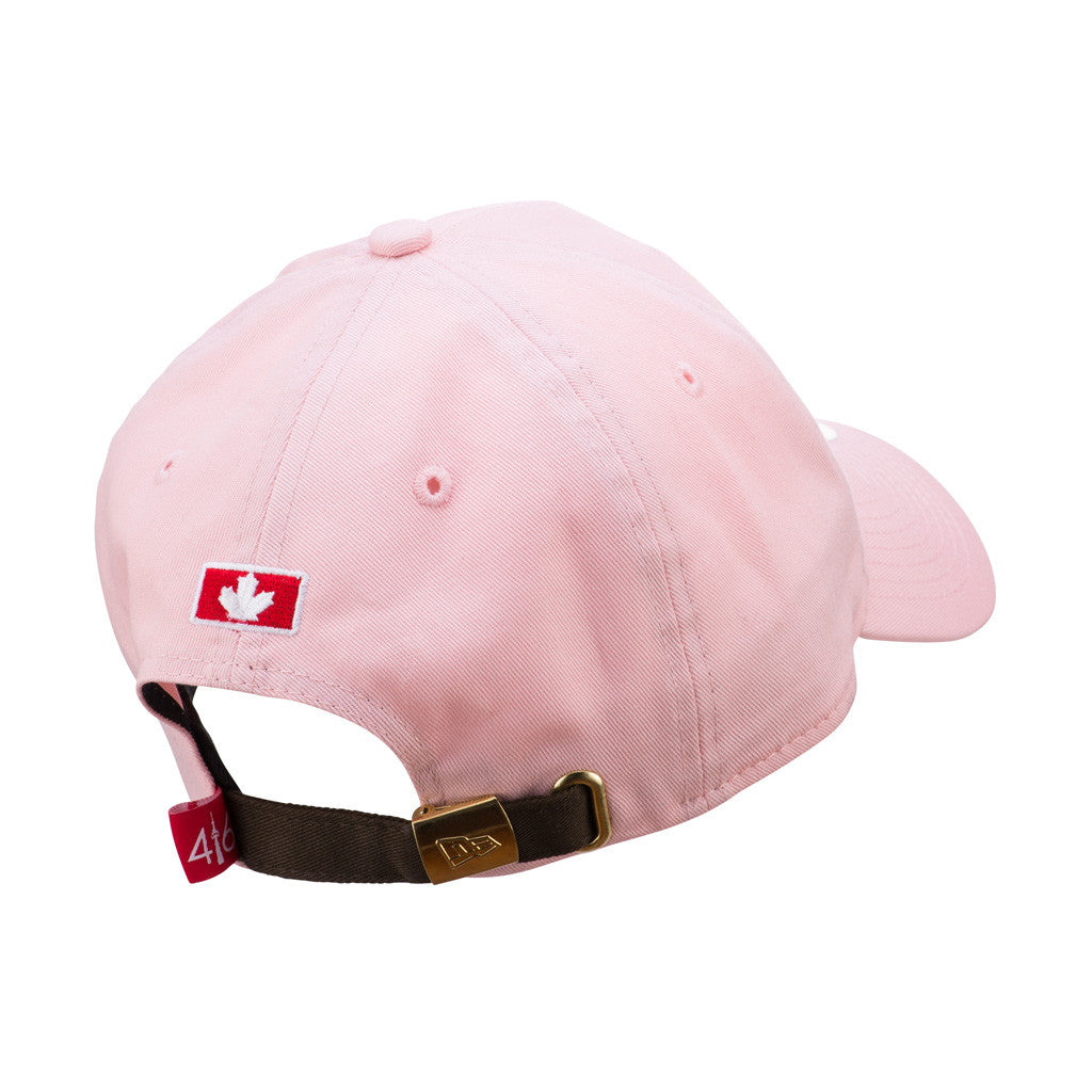 This 416 9TWENTY cap features an embroidered 416 logo at front, a stitched New Era flag at wearer's left side, and embroidered Canada flag on the rear. Interior includes branded taping and a moisture absorbing sweatband.