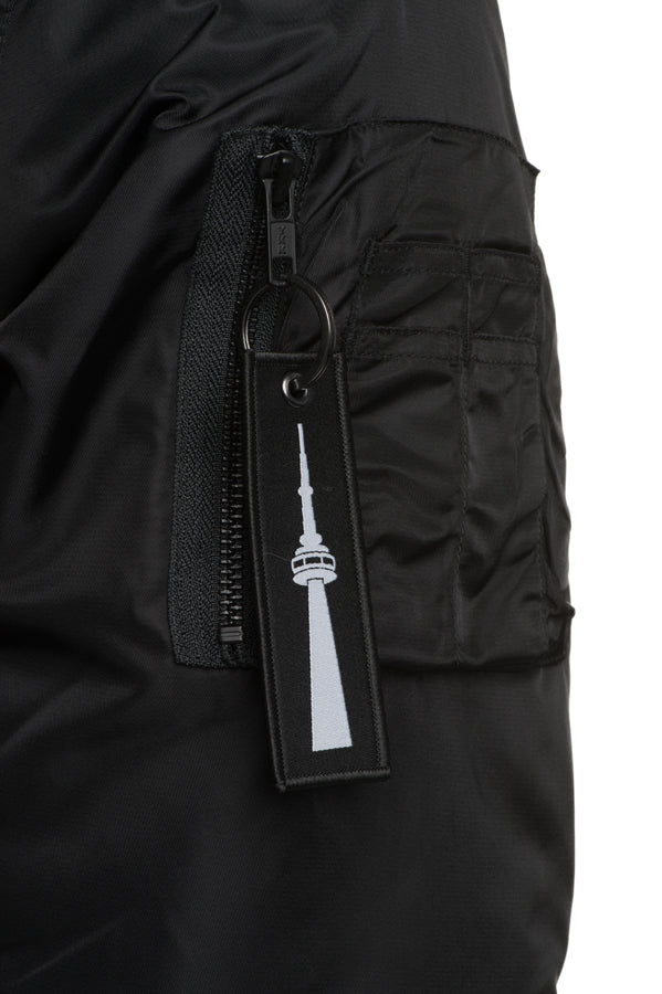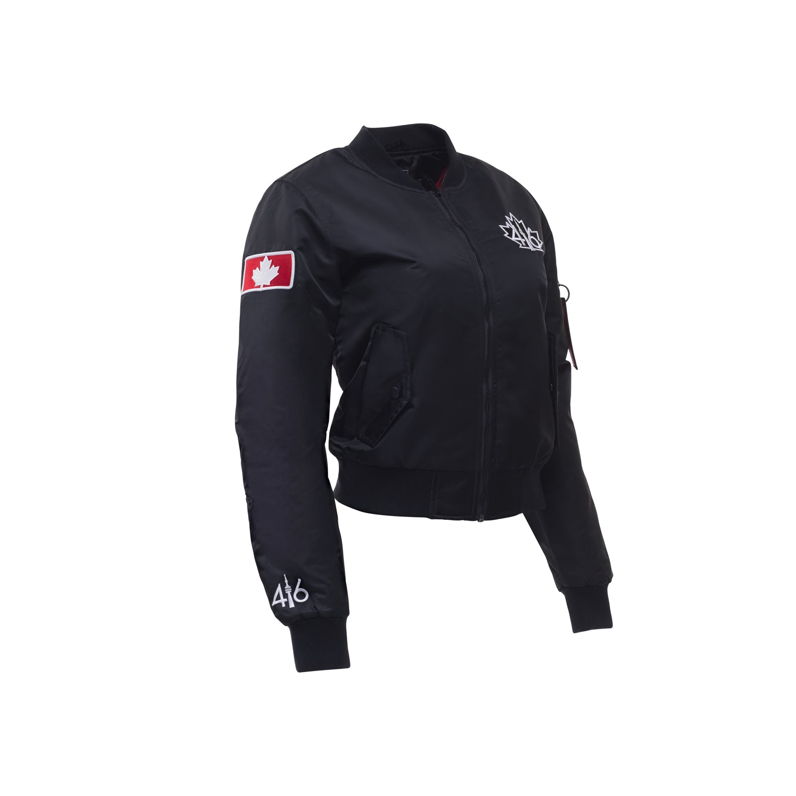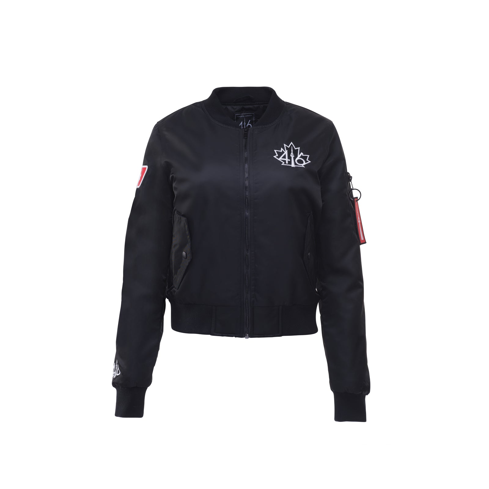 Our 416 Bomber Jacket features a series of 3D embroidered logos, a true one of a kind lining, twill letters reading 'TORONTO' across the back to boast YOUR city, two front pockets, a zippered arm pocket, and a signature tag that will have your pride on full display.